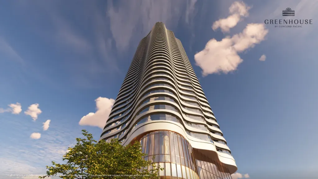 Introducing Greenhouse, a 42-storey residential highrise located at Barker Avenue & Olive Avenue in Metrotown’s Central Park East neighbourhood. Developed by Concord Pacific, this modern-day interpretation of the French orangeries of old offers 314 condominiums. A separate 6-storey apartment building houses 52 rental homes. The tower residences range from 501 to 1,608 sq ft and offer 1- to 3-bedroom floor plans, including adaptable units. Approximately 14,000 sq ft of strata amenities feature an indoor swimming pool, spa, gym, virtual golf, putting green, party rooms, and a guest suite. Greenhouse provides four levels of underground parking with space for 814 bicycles and 371 vehicles. Alternative transportation options will include transit passes and, possibly, carshare vehicles.